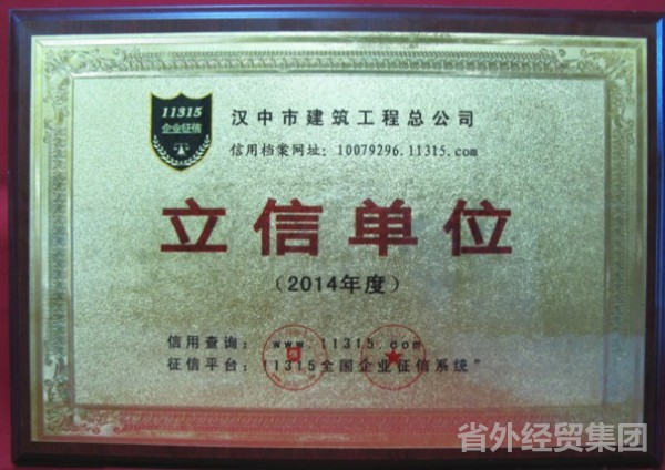 近期漢中市開(kāi)展信用體系建設(shè)、完善企業(yè)信用檔案工作。集團(tuán)所屬漢中市建筑工程總公司被授予“11315全國(guó)企業(yè)征信系統(tǒng)立信單位”。